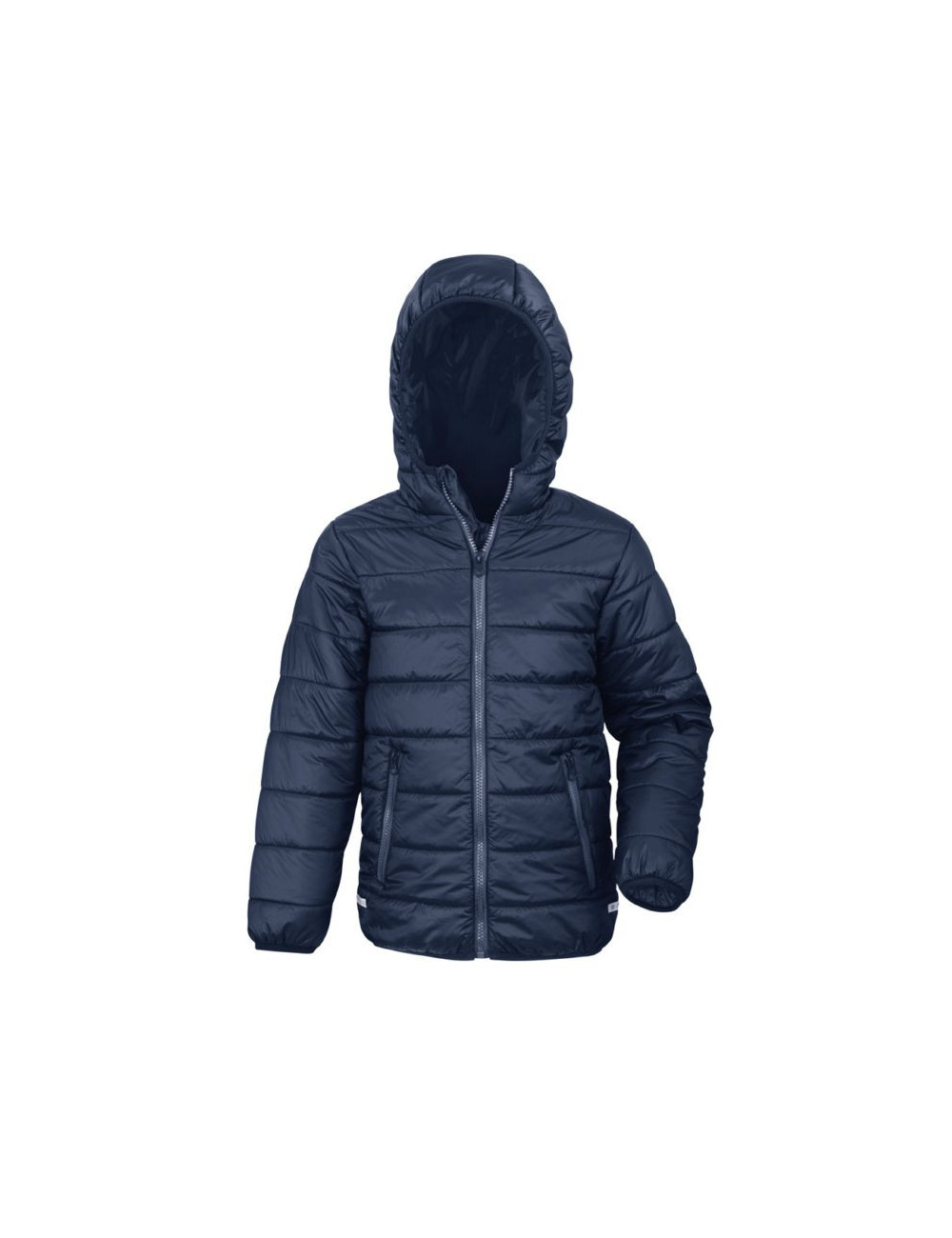 Fermeture grand zip. Finitions réfléchissantes aux poignets. Biais de finition poignets et bas de vêtement. Doublure et finitions constrastées. Poches zippées. Capuche attenante (dans le prolongement du col). Étiquette neutre dans le cou. Très douce, légère et chaude. Facile à ranger et compacte.